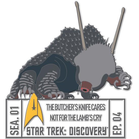 And the fourth pin in FanSets' Star Trek: Discovery Episode Pin set is the Ripper, commemorating episode four, "The Butcher's Knife Cares Not for the Lamb's Cry." It features the creature referred to as the Ripper, which tore through the U.S.S. Glenn and is a killing machine. Captain Lorca wants to "weaponize it, but is it friend or foe? And what's its relationship to the experimental organic-propulsion system?
