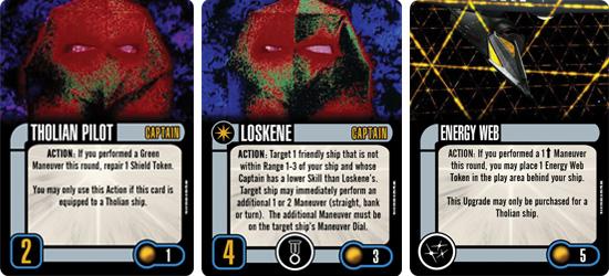 NECA/WizKids will release Star Trek: Attack Wing Wave 12 in March and StarTrek.com has exclusive First Looks at the upcoming trio of ships, which we'll again showcase in a series of three articles. Today we look at the Independent Tholian Vessel: Tholia One. Loskene will help deploy additional ships in a player’s fleet while the Tholian Pilot will keep his own ship in the fight longer as he repairs a Shield Token. Players will want to make use of Tholia One’s ability by equipping it with the Energy Web weapon upgrade.