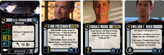 StarTrek.com has the final First Look at NECA/WizKids' upcoming Star Trek: Attack Wing Wave 14 releases, and today we preview the Federation U.S.S. Pegasus, out in May. Due to it being a prototype vessel, this Oberth class starship allows Tech Upgrades to be deployed to it at a discount. Admiral Erik Pressman can take advantage of that savings as he’ll have more upgrades at his disposal to use to increase the attack potential of his ship. Ronald Moore can spring to action and place a Battle Station action beside the ship, which is beneficial since the U.S.S. Pegasus does not have it listed on its action bar. Regardless of which Captain is used for the ship, William T. Riker can help increase their Captain Skill or step in to take command should the Captain become disabled or discarded.