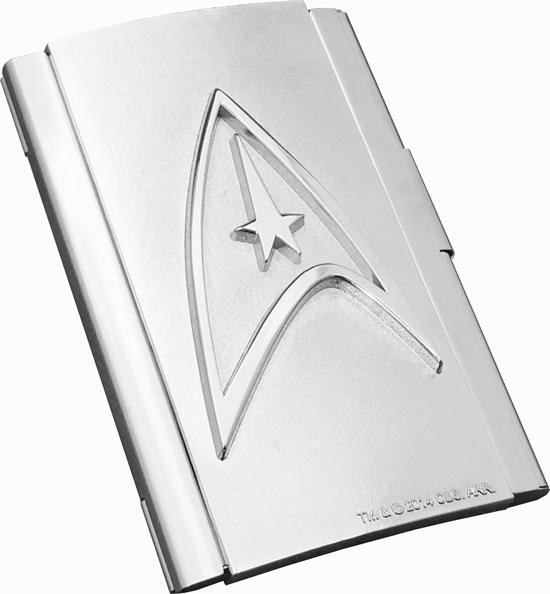 Icon Heroes scored a hit with their Spock Business Card Holder and StarTrek.com has First Looks at two of the company's upcoming additions to their line of Trek products. The Star Trek NCC-1701 Card Case is a high-quality metal case embossed with an image of the USS Enterprise NCC-1701. On-the-way product number two is a Star Trek Command Card Case, also made of high-quality metal and embossed with the Starfleet Delta Shield.