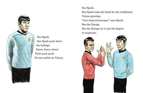 PEARLMAN: It's a Star Trek-set parody of the classic Dick and Jane stories. So instead of seeing Spot go, we see the Enterprise going boldly, and instead of seeing Sally look at a something, a well or a turnip or whatever Sally looked at, we see Scotty look at a Jefferies tube. It’s a new, simplified, and fun look at some iconic moments and characters from The Original Series. I don’t mean to sound like marketing copy, but it’s great for fans of any age, and a totally accessible introduction for kids new to Star Trek.