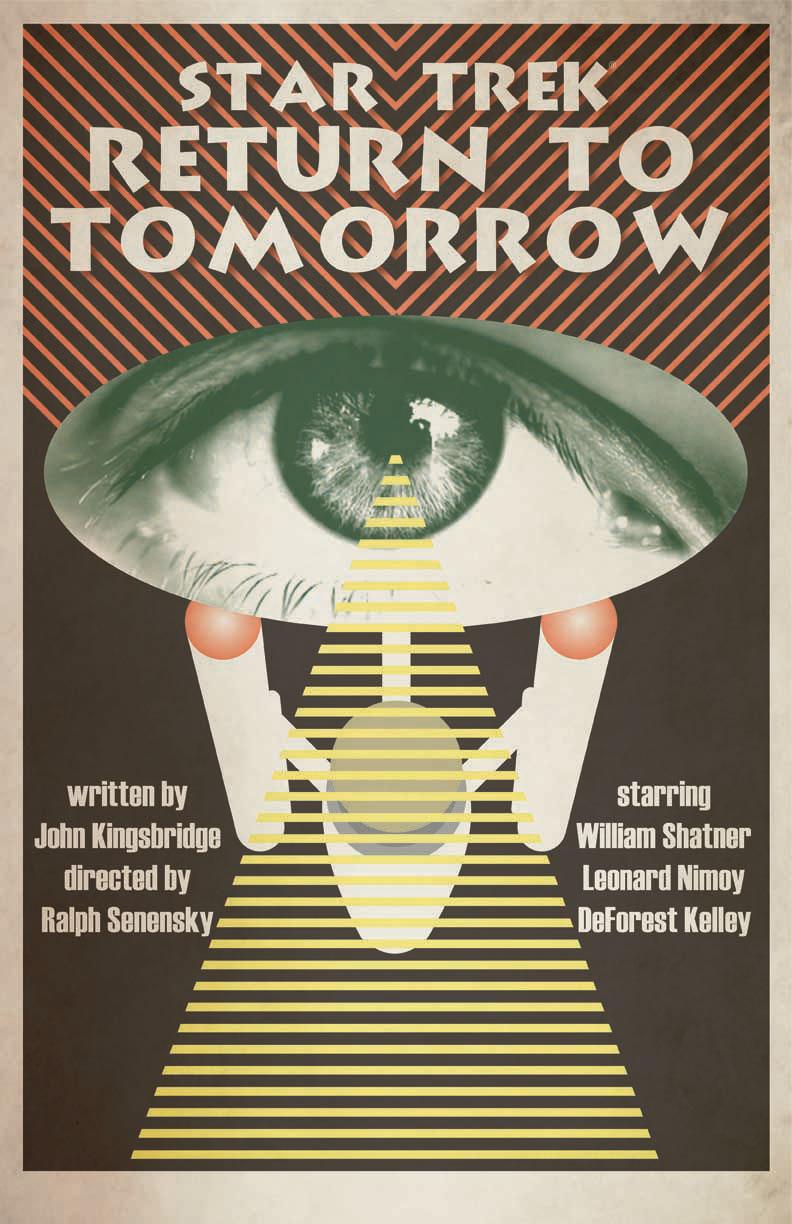 ORTIZ: I wanted Diana Muldaur's eye, but I was unable to locate a high-res image. But I would hope that her character in the episode is evoked in the poster. It can also be interpreted as the Enterprise's eye, since ships are called "she." In which case, the beaming down concept also works.
