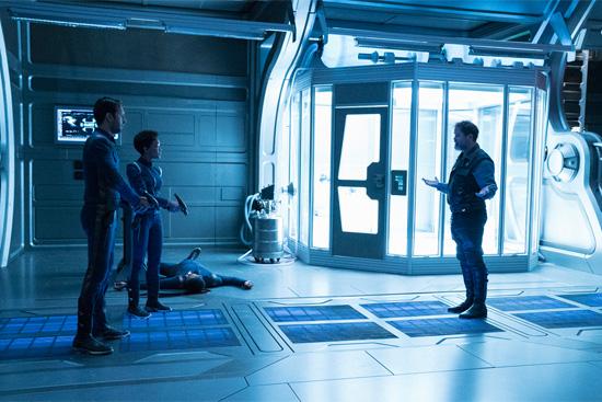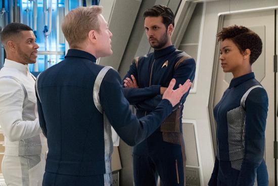 Dr. Hugh Culber (Wilson Cruz), Lieutenant Paul Stamets, Lieutenant Ash Tyler and Science Specialist Michael Burnham