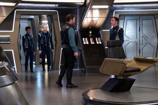 Harry Mudd, Captain Gabriel Lorca, Science Specialist Michael Burnham, Lieutenant Paul Stamets and Lieutenant Ash Tyler