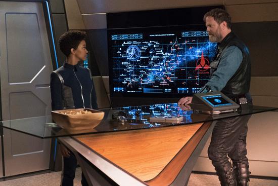 Science Specialist Michael Burnham (Sonequa Martin-Green) and Harry Mudd (Rainn Wilson)