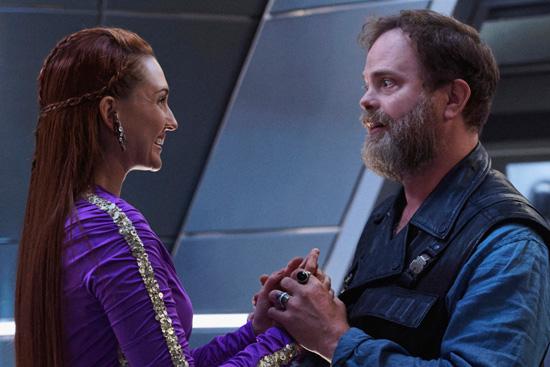 Photos from “Magic to Make the Sanest Man Go Mad,” the upcoming seventh episode of Star Trek: Discovery, have just been released, and they feature Rainn Wilson. He reprises his role as Harry Mudd, who wreaks havoc aboard the U.S.S. Discovery.