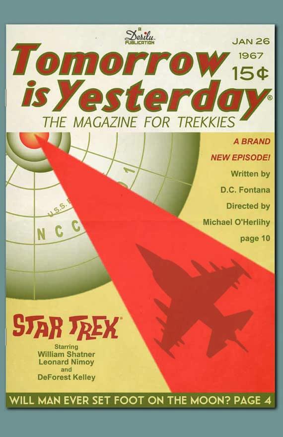 You went with the Horta's handiwork rather than an image of the Horta. Interesting choice. Take us through the decision.ORTIZ: For the sake of those that had never seen the episode, I did not want to show the Horta on the poster. As I re-watched "The Devil in the Dark," the smoldering imprint of a man left on the ground made for a powerful image. It's reminiscent of the "shadows" left behind by the bombs dropped on Japan. Up next is "Tomorrow Is Yesterday." What inspired you to go with a magazine cover?ORTIZ: It didn't start out as a magazine cover, but the design led me in that direction. It was fun to imagine myself back in 1967 designing a magazine cover with the term Trekkies on it. Trekkies were new back then, so it was nice to finally include them in this poster set. Originally, the blurb on the bottom read, "Are The Beatles Time Travelers?" It may have been a copyright issue, so we went instead with the moon-landing question.