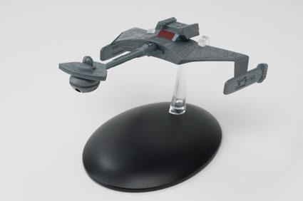 The model of the Klingon battlecruiser is based on the TMP version. Like the Enterprise, the Klingon ship got a major upgrade for its appearance in the first Star Trek movie, with new design work done by Richard Taylor and Andy Probert. This version has much more surface detail than its original series predecessor, but has a simpler, gunmetal paint scheme than the CG version that appeared in Deep Space Nine over 20 years later. The accompanying magazine provides an inside look at the design process, with some rare photographs of the studio model and a profile of the ship.
