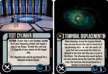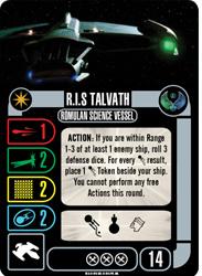 This October NECA/WizKids will release Star Trek : Attack Wing Wave 19, and StarTrek.com has the exclusive First Look at the ships in the upcoming expansion packs, finishing out the Wave 19 previews with the R.I.S Talvath.The R.I.S Talvath was built to conduct both standard and experimental research. As such, the Talvath is quick and evasive, but not a warship. With a primary weapon value of 1, agility value of 2, hull and shield value of 2, this ship is designed to get in and get out quickly without taking heavy hits. Three tech upgrade slots allow you to load the Talvath up with any research equipment you might need. The action bar has Evade; Cloak and Sensor Echo actions available to help avoid any interruptions to your research. The ship itself has a special ability that allows the Talvath to potentially add up to 3 evade tokens next to the ship, helping it to survive any hostile encounters.