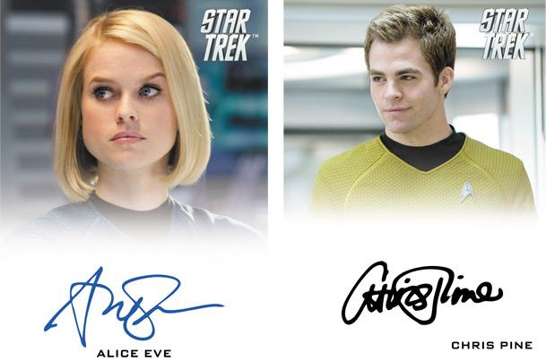 Of course, the highlight for most fans will be the many Star Trek (2009) and Star Trek Into Darkness actors who have signed autograph cards that will be included two per box. The signers include Chris Pine (Captain Kirk), Zachary Quinto (Spock), Leonard Nimoy (Spock), Benedict Cumberbatch (Khan), Alice Eve (Carol Marcus), Peter Weller (Admiral Marcus), Bruce Greenwood (Admiral Pike), Ben Cross (Sarek), Jennifer Morrison (Winona Kirk), Simon Pegg (Scotty), Rachel Nichols (Gaila), Deep Roy (Keenser), W. Morgan Sheppard (Vulcan Science Minister), Greg Ellis (Chief Engineer Olson), Joseph Gatt (Science Officer 0718), Clifton Collins (Ayel), Sonita Henry (Kelvin Doctor), Jason Matthew Smith ("Cupcake"/Burly Officer) and more.