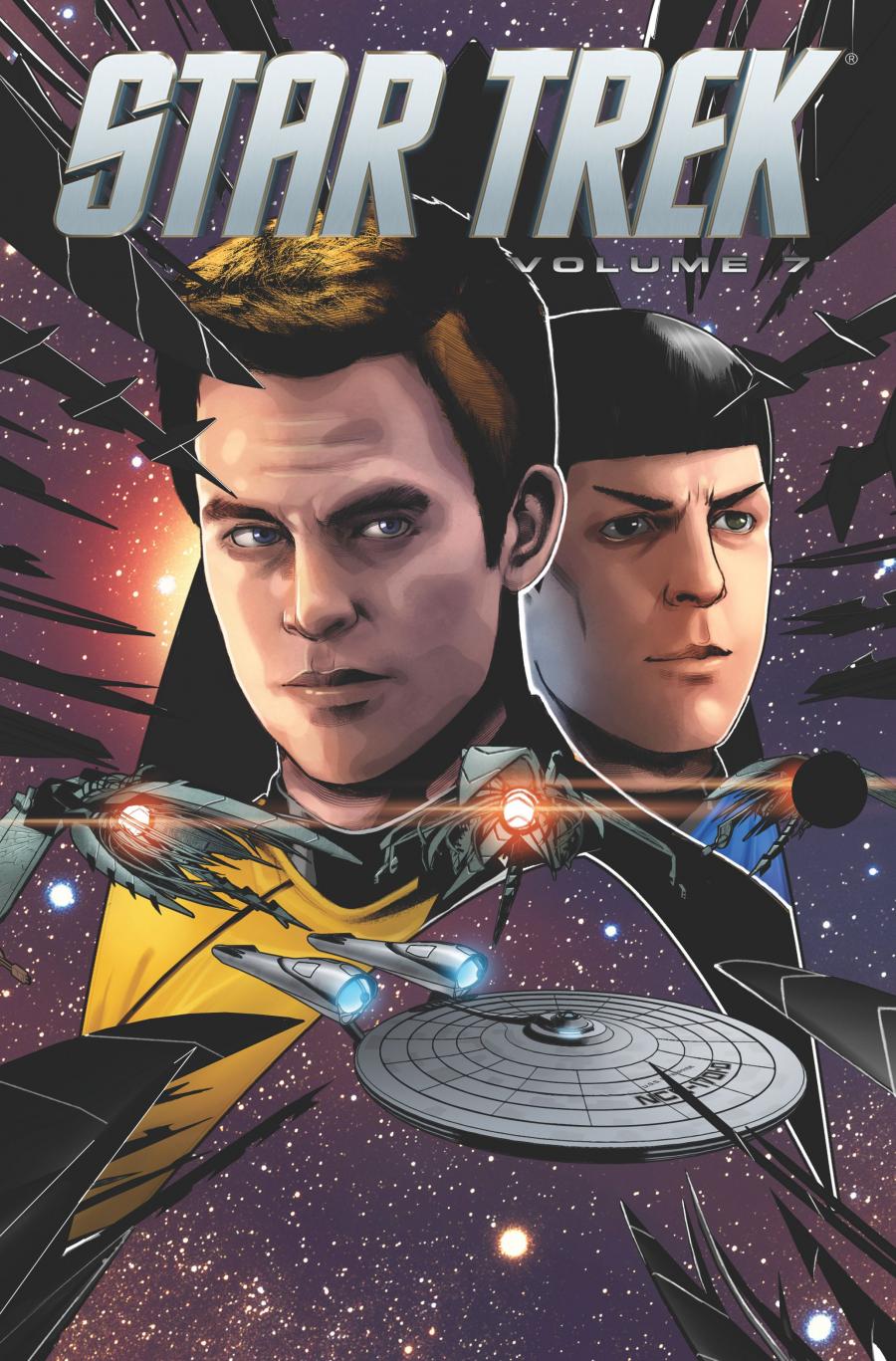 IDW Publishing is thinking ahead, that’s for sure. And that’s a good thing, because it lets us at StarTrek.com give you a preview of things to come – Star Trek comic book-wise – in March 2014. Fans can expect Star Trek, Vol. 7, a 104-page trade paperback that gathers together issues 25-28 of the ongoing series of Trek adventures set after the events of Star Trek Into Darkness. The tales, which involve the Klingon and Romulan Empires fighting for supremacy, with the Enterprise and her crew trapped in the middle, are overseen by Roberto Orci, written by Mike Johnson and feature art and a cover by Erfan Fajar. Star Trek, Vol. 7 will sell $17.99.