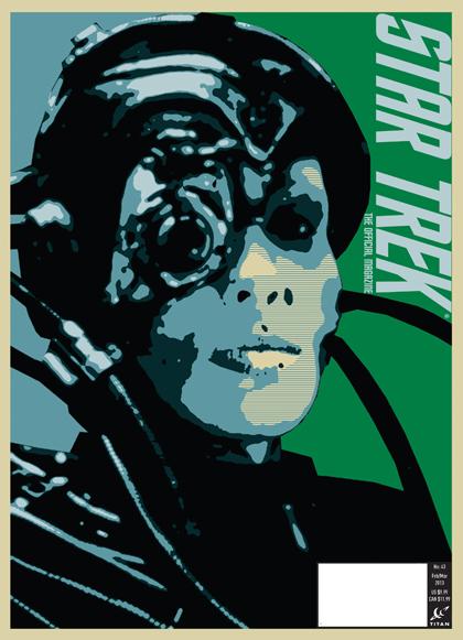Issue #43 of the official Star Trek Magazine will go on sale on January 22 and StarTrek.com has a First Look at not one, but two Issue #43 covers. The first cover is on the newsstand edition of the magazine. It features an image of Chris Pine and Zachary Quinto as Kirk and Spock from Star Trek Into Darkness, as well as teasers about the stories inside. The second cover is a comic-book shop exclusive, and it offers a cool and colorful print of a TNGBorg drone.
