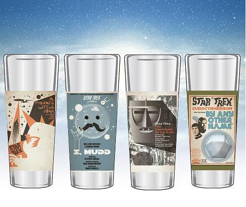 The Juan Ortiz TOS Art Print designs for November -- specifically “A Private Little War,” “I, Mudd,” The Conscience of the King” and “By Any Other Name” -- are set to be emblazoned on shot glasses that will available early next year from Bif Bang Pow!