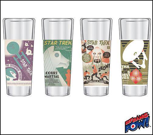 We’ll drink to that. If you liked the Juan Ortiz TOS Art Prints for September – “The Enterprise Incident,” “Court Martial,” “The Gamesters of Triskelion” and “That Which Survives” – you’ll be happy to know that those designs will soon be emblazoned on shot glasses from Bif Bang Pow!