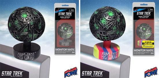 Visit EntertainmentEarth.com to purchase the Khan, Kirk and Spock Bobble Heads as well as the Star Trek: First Contact Borg Sphere Monitor Mate Ship. All of the products will ship later this month.