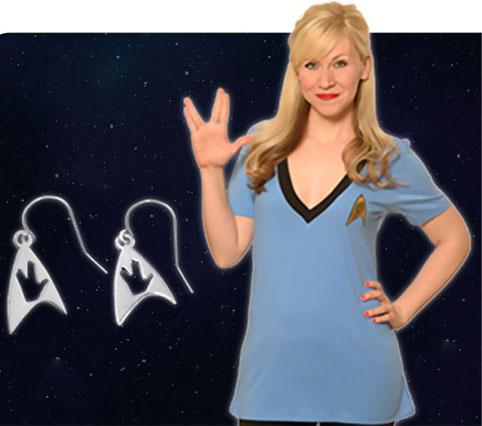 Her Universe is celebrating the 47th anniversary of Star Trek and thanking its loyal customers by offering a set of "Live Long and Prosper" earrings free to fans who purchase any Star Trek apparel item between now and September 11 at heruniverse.com. The earrings, which are a $25 value, feature the Vulcan split-fingered greeting within the Starfleet insignia.