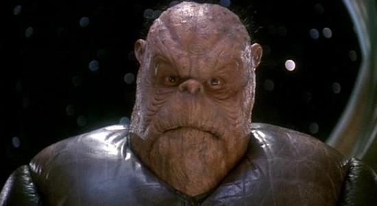 Before her Emmy-winning role as Rebecca Howe on Cheers, Kirstie Alley of course had appeared as Saavik in The Wrath of Khan. Alley’s Cheers co-star Paul Willson, who played frequent bar patron Paul Krapence, did a turn on Voyager as one of the Hierarchy aliens in “The Void.”