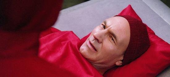Upon waking, Picard manages to walk a fine line between gratitude at not being dead, and annoyance at having had his medical business effectively broadcast to the entire ship. He needn't have worried, as it turns out; his authroity, as ever, remains undiminished.