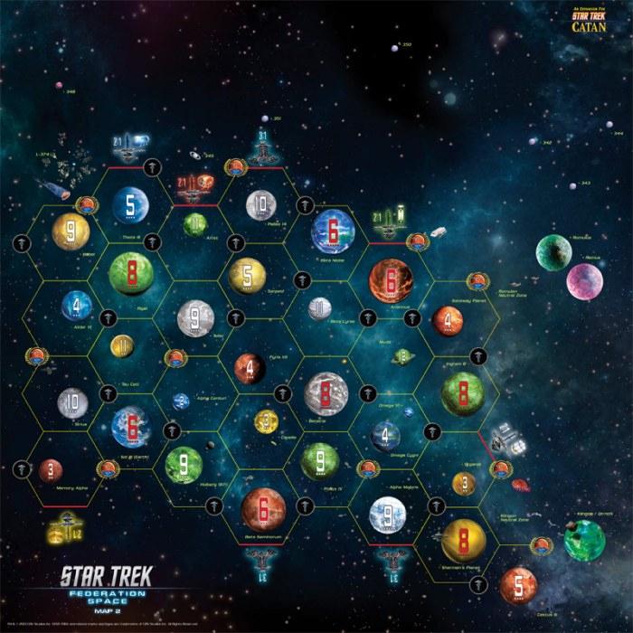 Ron Magin, Gero Zahn and the rest of the Catan and Mayfair teams turned the Explored Galaxy map into two playable Catan boards through their knowledge of the game and through extensive testing, making sure the balance was right. Once the planets included were determined, Charles Rice was tasked with writing an almanac and providing players with details of Star Trek episodes correlated to locations on the map, including an episode guide.