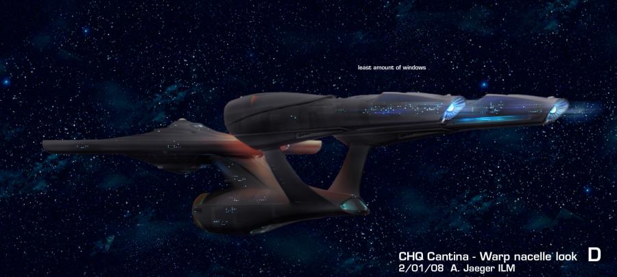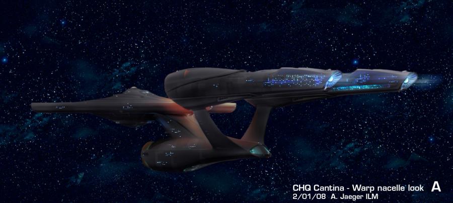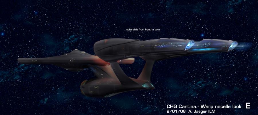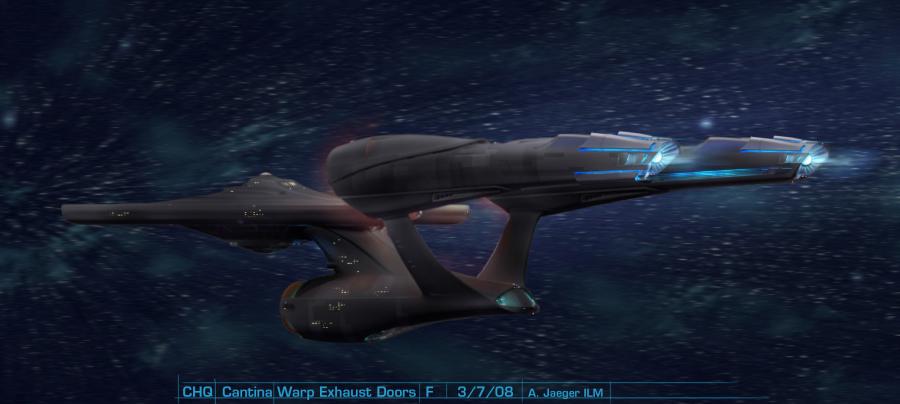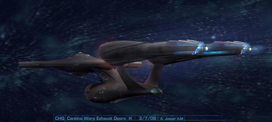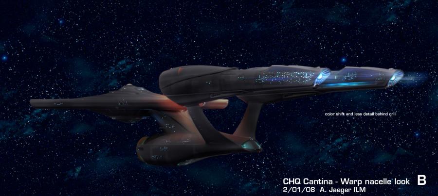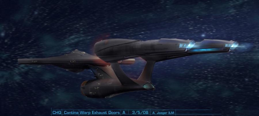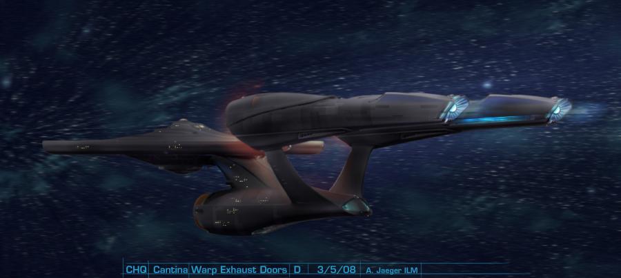We’ve been putting the magazine together for our second special, which is a model of the Star Trek (2009) version of the Enterprise. The magazine is almost all about the design process and is full of concept art. We’ve been talking to production designer Scott Chambliss and concept artist Ryan Church (who designed the new Enterprise), as well as ILM’s Alex Jaeger. They’ve all been incredibly helpful. One of the things that Alex Jaeger turned up was a series of concept artworks that showed different ways that the Enterprise’s warp nacelles could light up as the ship goes to warp. I’d never seen them before and thought they were absolutely fascinating.