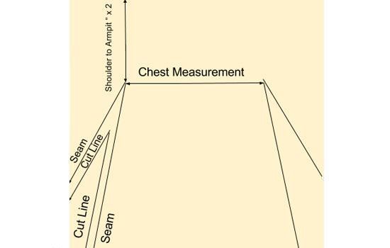 This diagram will help you create the robes. If you don’t have a sewing machine, you can cut ties into the fabric to bind both sides of the robe together. When done sewing or tying, flip the robe inside out.