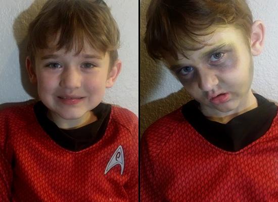 You may have seen them staggering through the convention halls at many Star Trek or other conventions. The Walking Red are a group of Trek enthusiasts who regularly mashup Trek and The Walking Dead to create their own spin of both franchises. While some of the outfits may look complicated, with just a few steps you can turn a plain red t-shirt, a pair of black pants and a little makeup into a stunning look that’ll make you proud to wear the red.