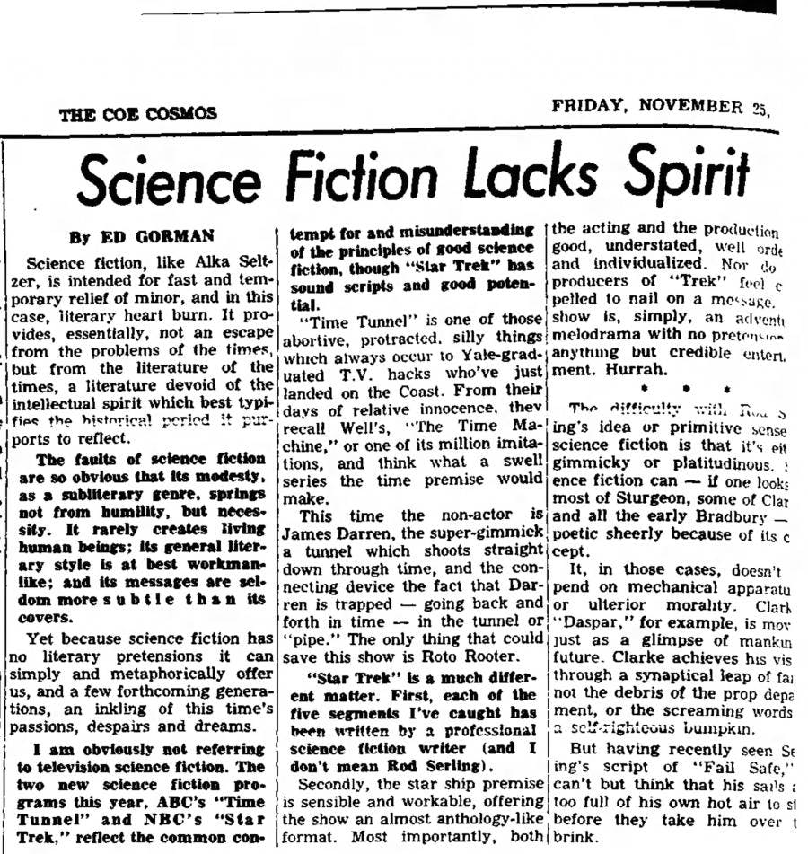 Harsh Reviews of The Original Series from 1966? Believe It.