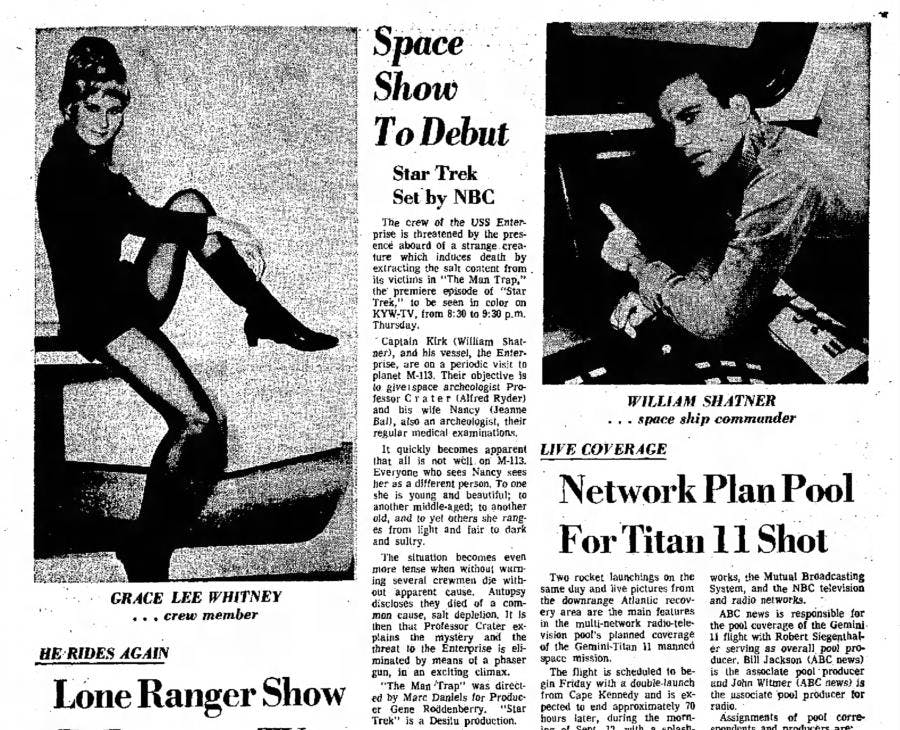 Star Trek: The Original Series will turn 50 tomorrow. It's a remarkable achievement and a testament to the staying power of Gene Roddenberry's "Wagon Train to the Stars." But don't for a minute think that everyone, everywhere, embraced Star Trek from the get-go. More than a few critics did not care for the series when they reviewed the first episode, "The Man Trap." In fact, they trashed the show. StarTrek.com, with the help of Maria Jose and John Tenuto, our friends and StarTrek.com bloggers, tracked down some old newspaper clips. Below are a few excerpts -- and be sure to search the actual articles to see just how far from a sensation Star Trek was back in 1966.