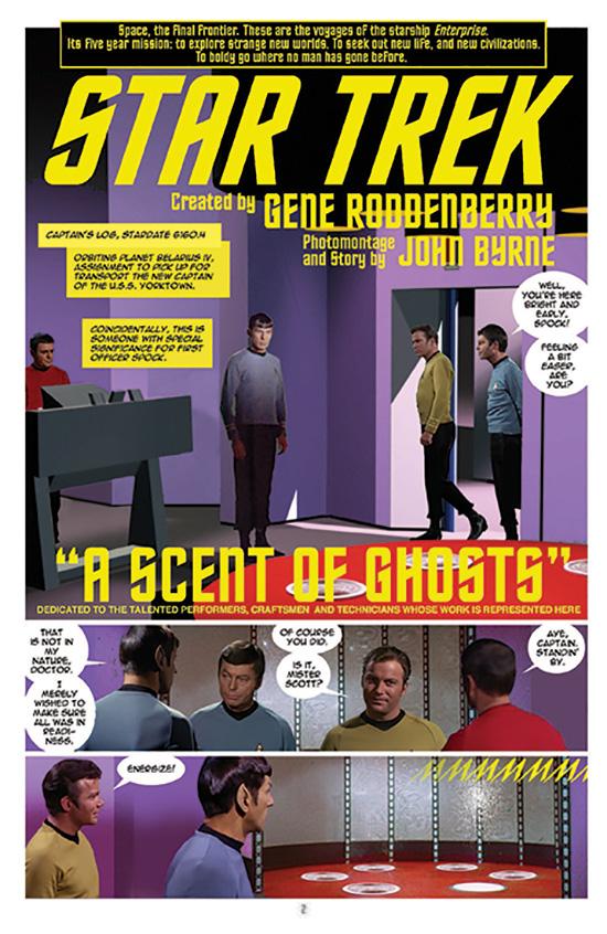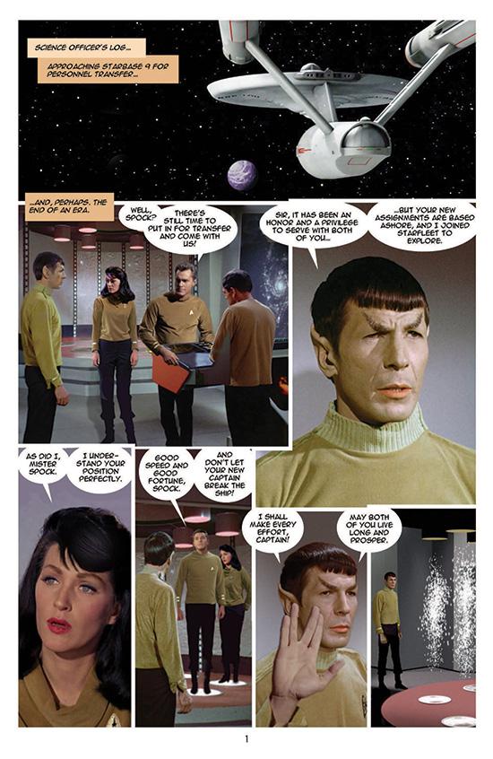 Mark down the date: March 4. That's when IDW Publishing will release its latest Star Trek comic books, New Visions: "A Scent of Ghosts" and Star Trek/Planet of the Apes #3 (of 5). StarTrek.com has details about the titles, as well as exclusive preview pages. “A Scent of Ghosts” is the newest photoplay adventure by writer, artist and photo-manipulation John Byrne. In it, past and present collide as the Enterprise crew takes aboard a special figure from Spock’s past, only to find themselves haunted by a mystery from years before. And in a second photo-story, "Memoriam," there's a sad farewell.