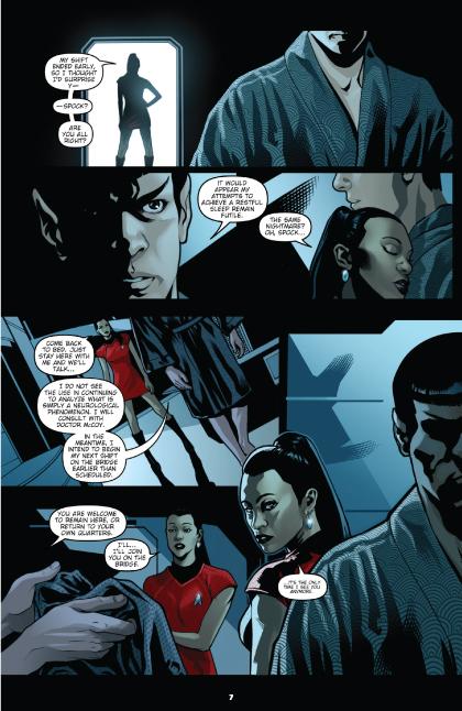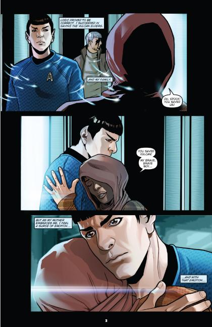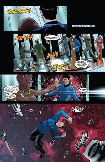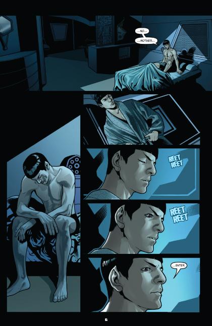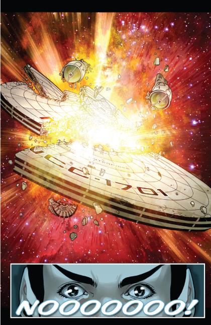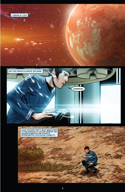 It begins… tomorrow. IDW Publishing will deliver the long-awaited Star Trek: Countdown to Darkness #1 to stores on Wednesday. We’ve already shown you the Issue #1 cover, told you about the iTunes pre-order opportunity and even previewed Issue #4 and its Klingon cover; now check out eight pages of preview art from Issue #1.The blockbuster four-issue prequel mini-series sets the stage for Star Trek Into Darknessand, in fact, leads directly into the upcoming big-screen adventure. Like the bestselling Star Trek: Countdown back in 2009, Countdown to Darkness has been overseen by writer-producer Roberto Orci, while Mike Johnson penned the story and David Messina handled the art and cover.