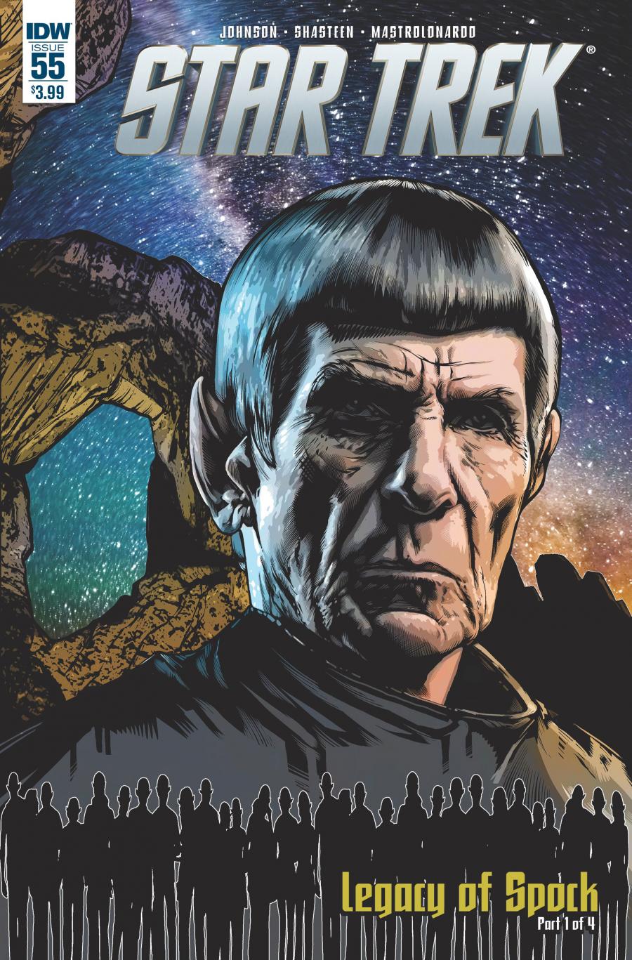What happened to Leonard Nimoy's Spock after the events of Star Trek (2009)? Find out on Wednesday, when IDW Publishing releases Star Trek #55—Legacy of Spock, Part One, by Mike Johnson, with Tony Shasteen contributing the art and cover.