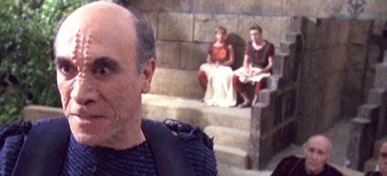 AMENDOLA: The Voyager cast was like a Greek acting company. We could have been doing The Curse of Oedipus on that set. When I think about it now there are scenic elements of the show that remind me of that set. I got a chance to work with John Schuck, and we kept cracking up because of the prosthetics we had on our foreheads. And I loved the premise of the episode, which was, “Let’s keep everyone busy with fear and the arts, and they won’t go off to war.” So it was odd, but fun. I really wish we had a week to rehearse and then go in and do the episode, but you make do and become fast friends with the people around you, and Mike Vejar was great.
