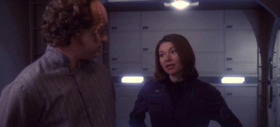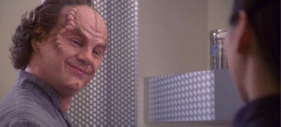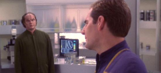 "'Dear Doctor' moved Phlox out of being the Yoda, out of being the comic relief. He'd been sage and whimsical, but he hadn't really wrestled with anything. And he did in that episode. It dimensionalized him. Plus, he had a bit of a love story there, with him and Cutler. It makes me sad thinking about it, actually, because we lost Kellie Waymire. I think she did one more episode of Enterprise before she passed away. She was a lovely young woman, so sweet and a wonderful actress. But the episode, with the moral issue and the love story, it made me realize there could be much more to Phlox over the arc of the season and the show. He could have been an insignificant character with not much to do."