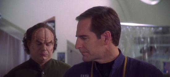 Oddly enough, however, it was also quite problematic for all involved. The initial idea for the episode's denouement was for Phlox to disobey Archer's orders, but UPN brass objected, and the ending was changed so that Phlox not only followed orders, but came to agree with the captain, stating, "I came very close to misjudging Jonathan Archer, but this incident has helped me gain a new respect for him."