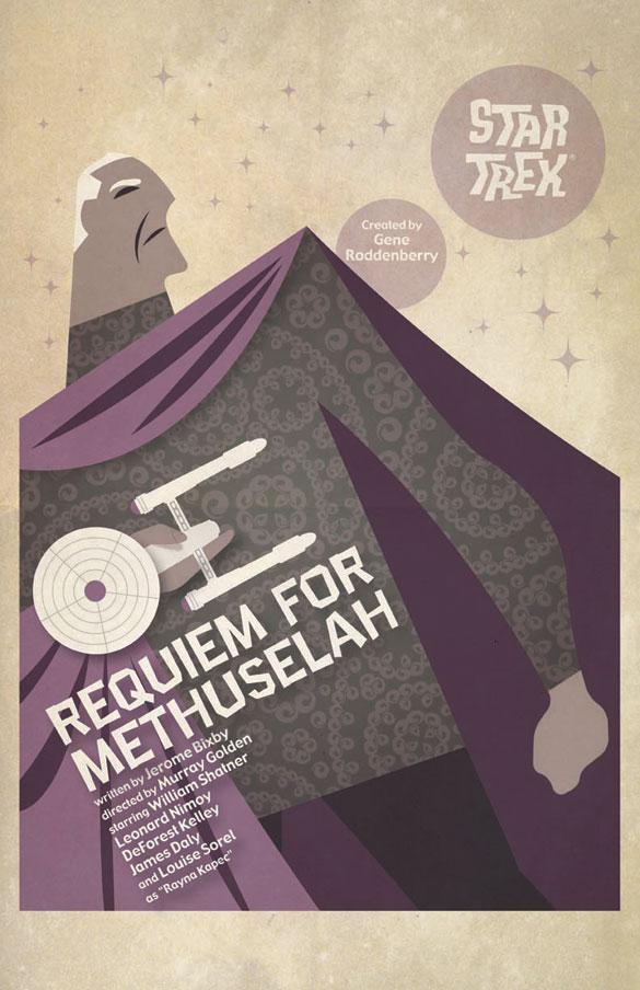 The last print for May is “Requiem for Methuselah.” What were you aiming for with his one?ORTIZ: Flint is 6,000 years old, but appears around 60 to us. The actor playing him was anything but god-like, but did look around 60. I wanted to convey his confidence and strength in his stance and his stare. A cartoon or animated pose was a good way to express those features.