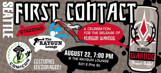 The Raygun Lounge will serve as the home to the latest First Contact: Klingon Warnog party, with Emerald City Comic Con and The Raygun Lounge sponsoring the event, which will be held at 7 p.m. on August 22. There will be cosplay, there will be swag and, of course, there will be Klingons toasting with the Warnog. The Raygun Lounge is located at 501 East Pine Street in Seattle. Visit www.gammaraygamestore.com/ and www.emeraldcitycomicon.com for details.