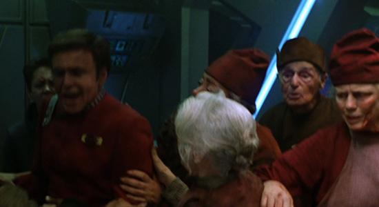 On Veridian III, Soran battled Enterprise Captain Jean-Luc Picard and succeeded in blowing up the sun. Picard entered the Nexus, where he met an echo of Guinan, who guided him to Captain James T. Kirk, who had been trapped in the Nexus since the 2293 incident. Because of the way time worked in the Nexus, the captains were able to exit to a time before Picard entered – and before Soran destroyed the sun. In the battle that followed, Soran was defeated, resulting in his death and the actual death of James T. Kirk.