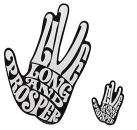 , and now we're happy toshare details about another fresh product, the Live Long & Prosper: Spock Car Decals. Each set includes two decals and each features the Vulcan salute and the words Live Long and Prosper.The large decal measures 6 1/4" tall and 4" wide, while the small one measures 2 1/4" tall by 1 1/2" wide. Each set costs $7.99. Visit ThinkGeek.com to purchase.