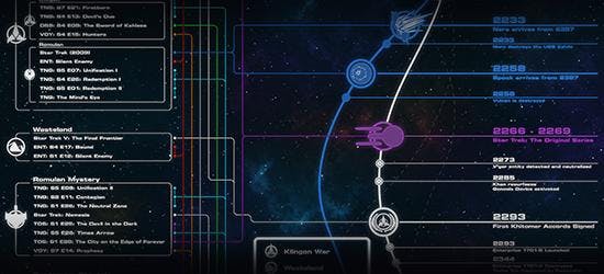 This infographic is designed for players and Star Trek fans alike to see exactly when Star Trek Online takes place, and how the developers weaved dozens of story arcs into the game. While watching the full episode list isn't a requirement to enjoy the game, players are definitely encouraged to do so for the supreme Star Trek experience.