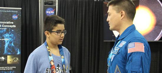 There, visitors can check out exhibits (NASA Innovative Advanced Concepts, High Performance EVA Gloves), learn more about TESS and the X-15 Hypersonic research airplane, and pose for photo against space-themed backgrounds and in an astronaut's spacesuit.