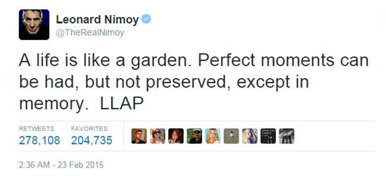 KNIGHT: When Leonard appeared on Piers Morgan, that’s when it really clicked for us. Leonard was a very private man, especially when it came to his health. But when he announced that he had COPD, he became very proactive and started posting messages about his condition and encouraging people to quit smoking. He’d been a huge smoker for a long time. And that’s when we thought, “It’d be great if we could really expand on what Leonard is doing.” That’s when we decided to produce a film on COPD. We were learning so much information from Leonard about the condition, and Leonard was learning about it himself. So we decided that if Leonard didn’t know much about it, there were probably a lot of other people who didn’t know much about the condition, either. We started reading and learning about it, and decided to do the documentary. The most startling thing we learned is that over 15 million people have COPD and they either don’t know it or have never officially been diagnosed with it. That’s what happened with Leonard. He had the symptoms, but was not officially diagnosed until much later. How involved was Leonard before he passed?NIMOY: While my Dad was aware of the project, his health was already compromised by his illness. He gave me encouragement and believed the documentary was an important way to reach the public.KNIGHT: So he was just involved in the early stages. There was a lot happening at that point. Sadly, my Mom had passed away. Julie and I were planning our wedding. Leonard’s health was in decline, and it really got worse around Thanksgiving, 2014. So there was a lot happening, but he was aware of us wanting to make the documentary. We told him what we were doing and he gave us some encouragement and some advice.