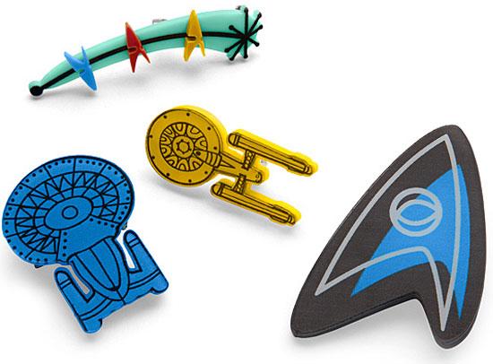 Her Universe has put a fresh spin on old-school brooches, and the results -- a Star Trek Vintage Style Brooch Set -- is available now from ThinkGeek.com. The Star Trek Vintage Style Brooch Set features four acrylic brooches that depict the U.S.S. Enterprise NCC-1701, U.S.S. Enterprise NCC-1701-D, a TOS Science Insignia and a shooting star retro design with all three original insignias.