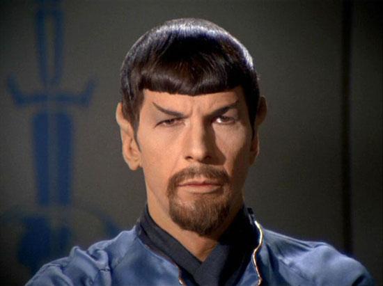 2 – Mirror Spock (and his beard.)Before “Mirror, Mirror” ever has a chance to explain itself, its visuals let us know the score. Spock has a beard, and we know he is evil. While the facially hirsute version of a character signifying evil has now become a cliché (to the point that Spock's Beard is the name of a prog supergroup), we shouldn't lose the character for the goatee – Mirror Spock, with or without the beard, is fascinating.And. . .optimistic. Since he is a creature of logic, he eventually realizes that an Empire cannot rule by fear and violence indefinitely. He realizes that peace, harmony, exploration, IDIC and all the other Roddenberry ideals are, eventually, the only way to go. The fact that logic and goodness is a universal constant in any timestream is something that should inspire us.