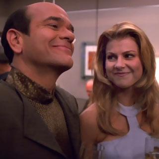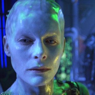 Underneath all that makeup there are actually real people. The first time we met the Borg Queen in First Contact, she was played by Alice Krige. The next two appearances (“Dark Frontier” and the two-parter “Unimatrix Zero”) she was played by Susanna Thompson. Thompson had multiple Trek roles over the years, as a Romulan on TNG, a Trill on DS9 (playing Dax's former lover in a new host) and as a simulated Tilonian in the Riker's-gone-cuckoo episode “Frame of Mind.” However, when it was time to bring the Borg Queen back to meet her fiery doom in “Endgame,” Krige once again got the nod.