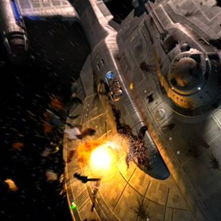 The Enterprise is the single greatest icon in the entire franchise. (With Spock's ears a close second!) If you are going to destroy it, you gotta' do it big. First, get an away team of evil Klingons on there. Then, have the auto-destruct count down in a really cinematic fashion. Then, don't just have it catch fire – you have it catch fire and then WHOOOOOOM! The entire hull just flies up in the air above it. This climactic moment from The Search for Spock left both an emotional and physical impact!
