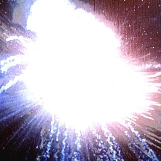In the very psychedelic TOS episode “The Alternative Factor” the push and pull between tectonic plates of time and space are causing ripples in the very fabric of the universe. Yeah, they don't really light up the sky, but try telling that to Lazarus as he engages in an eternal battle with his evil mirror in a corridor between matter and antimatter! Looks explosive to me.