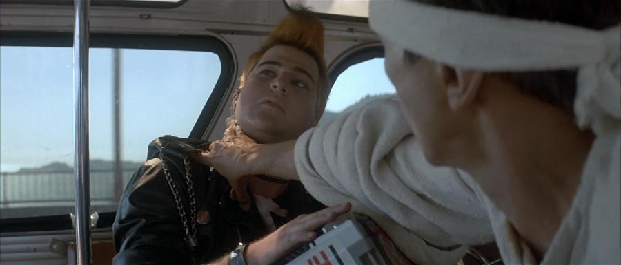 While riding a bus to the Cetacean Institute in Sausalito to see a pair of humpback whales named George and Gracie (just go with it), Kirk and Spock run afoul of an M-Class jerk who won't lower the volume on his boom-box. (Moreover, he feels the need to make coarse hand gestures that coincide with some of the song's crude lyrics.) While rendering a citizen unconscious may seem like a bit of abrupt behavior, especially from a Starfleet Officer, Spock's use of the Vulcan nerve pinch on the fellow inspires a round of applause from the other travelers.