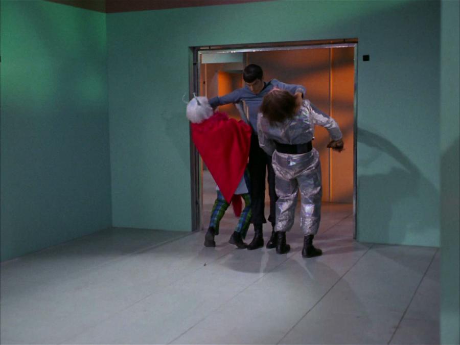 To those who watched TOS chronologically, this was the first use of the Vulcan nerve pinch. As we discussed previously, it was actually created (by Leonard Nimoy) for the episode “The Enemy Within.” But that episode ended up airing after this one.