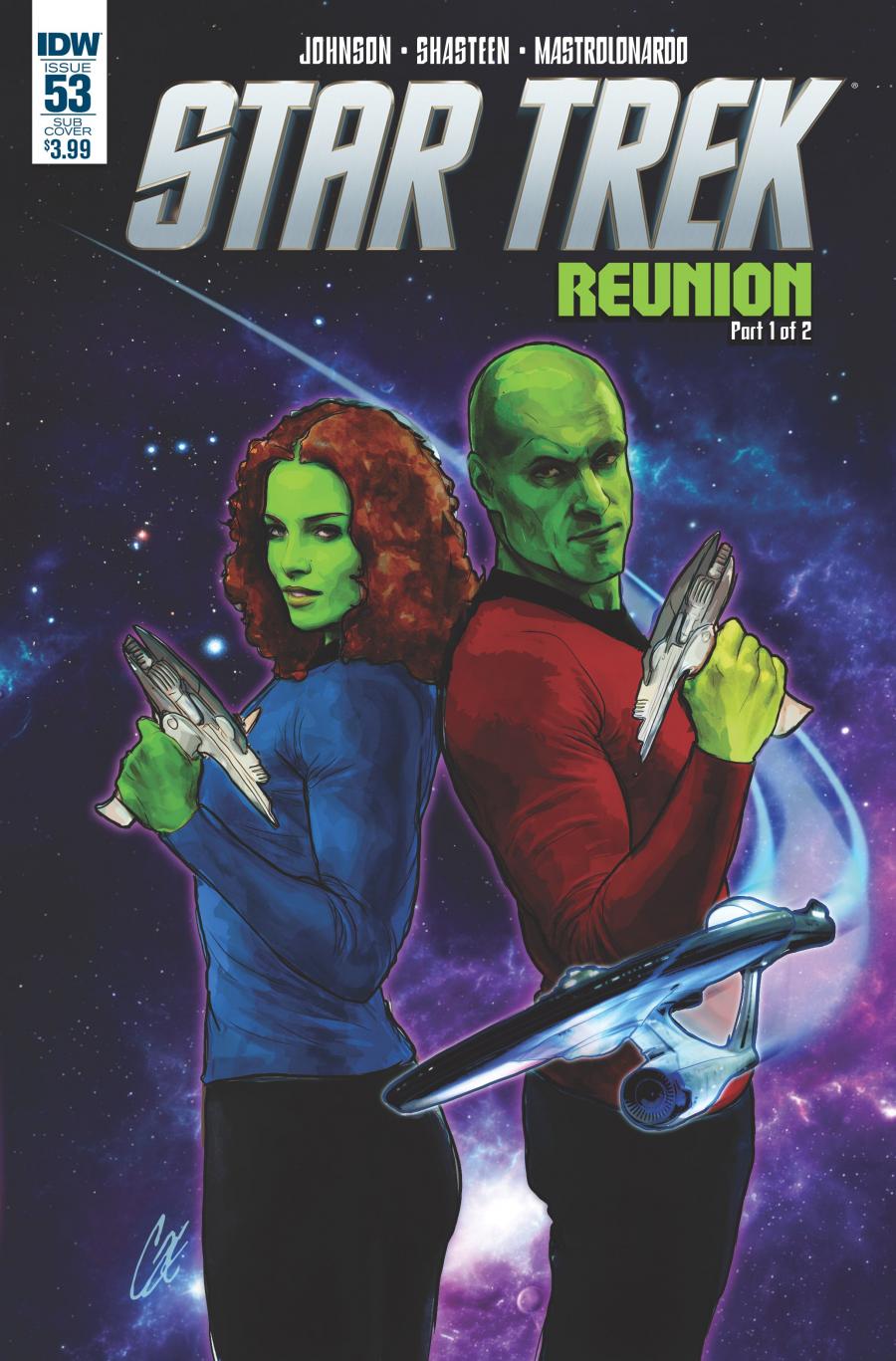IDW Publishing will fire up an all-new adventure for Captain Kirk and the crew of the Enterprise on Wednesday with the release of Star Trek #53 -- Five Year Mission: Reunion (Part 1 of 2). Set in the current Star Trek universe, Reunion finds the Orions intent on disrupting the truce between their species and the Federation. The story is written by Mike Johnson, while Tony Shasteen handles art and cover duties.