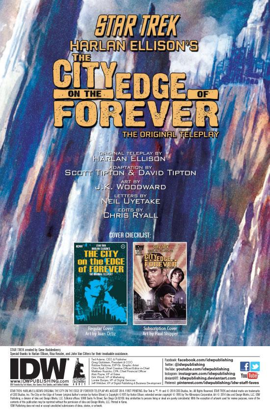 Star Trek: Harlan Ellison’s City on the Edge of Forever #3 runs 32 pages and costs $3.99. Fans should also be on the lookout for a subscription variant that features a cover by painter Paul Shipper. For additional details, contact your local comic book retailer or visit comicshoplocator.com to find a store near you. And keep an eye on StarTrek.com for further news about IDW's Star Trek comic books.